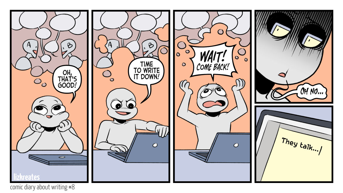 A limited weekly gag strip about my experience of learning how to craft stories. On twitter more than several strips went viral from 11k to 80k+ notes.